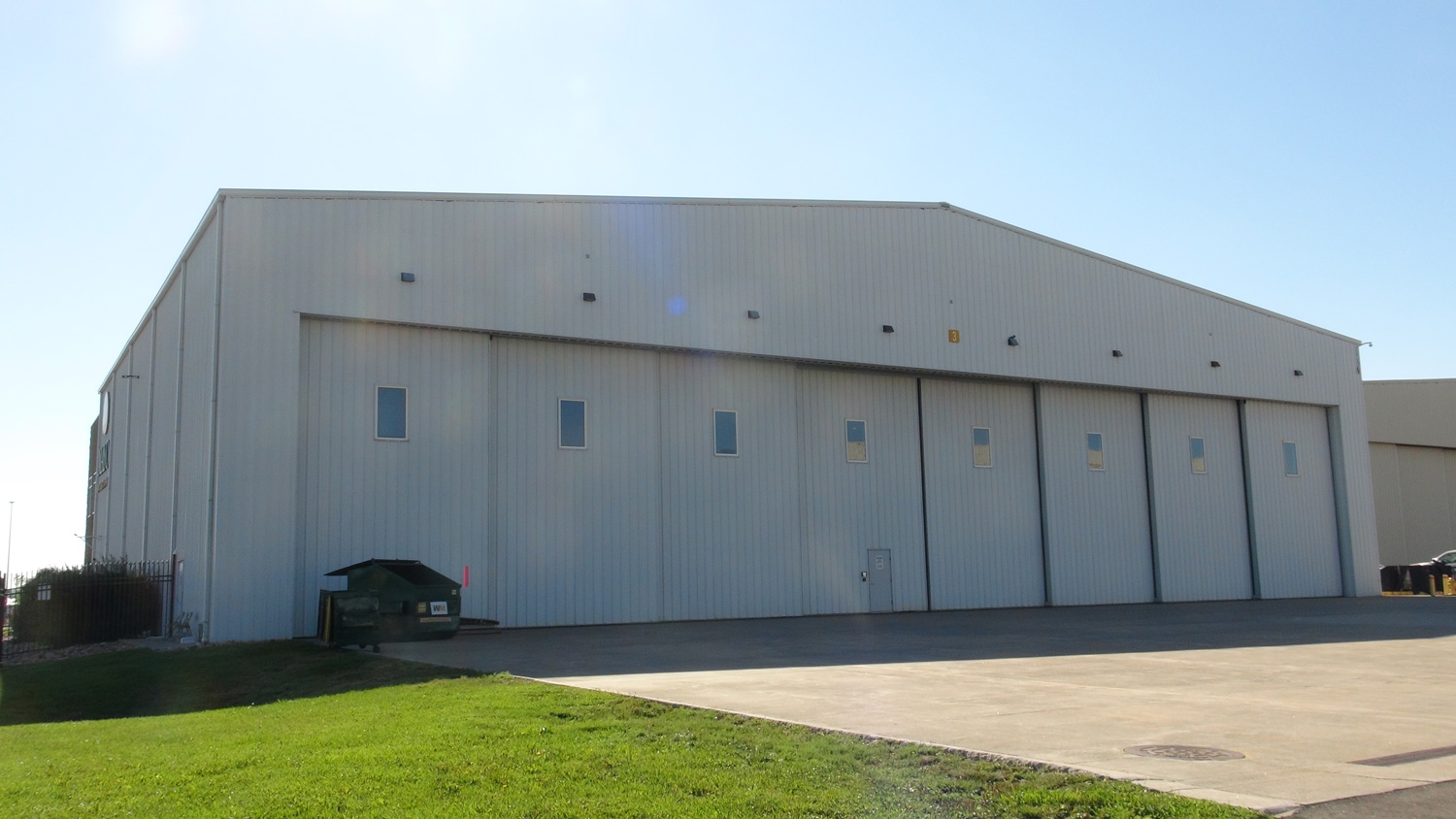 • Hangar Door: Bottom rolling uni-lateral eight section door (Door Engineering)